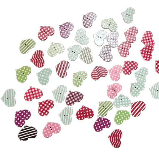 50pcs Heart Shape Decorative Painted Wooden Buttons Wood Button Wooden Decorations