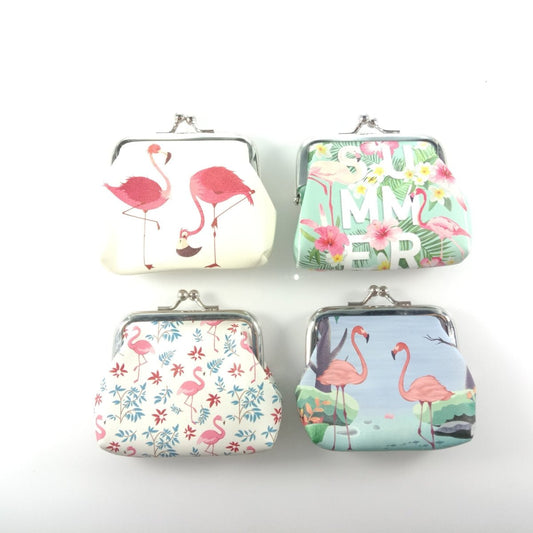 4pcs Flamingo Coin Purse Coin Wallet Snap Clip Closing Bags Women's 8.5x8cm Pouch Bags