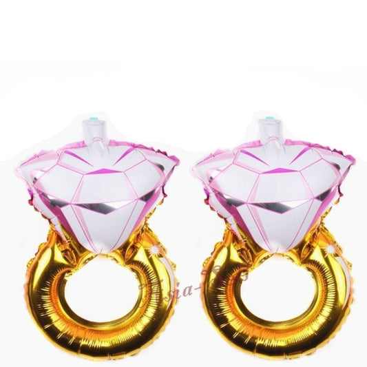 2x 40.5cm Diamond Ring Foil Balloons PINK BLUE Valentines Day Wedding Engagement