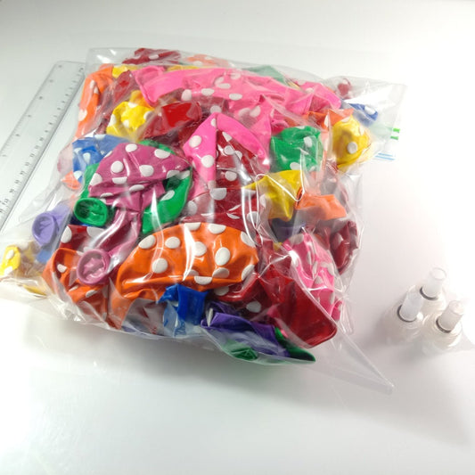 Large Bag of 12" Extra Large Polka Dot Balloons High Quality Rich Colours Including Hygiene Blowers