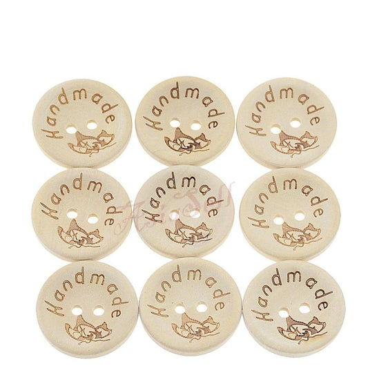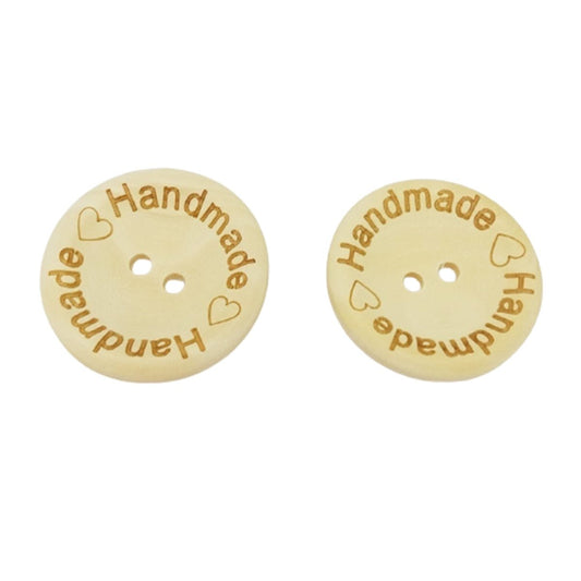 25pcs Wooden Buttons 2-Holes Handmade with Love Round Button Handmade Clothes