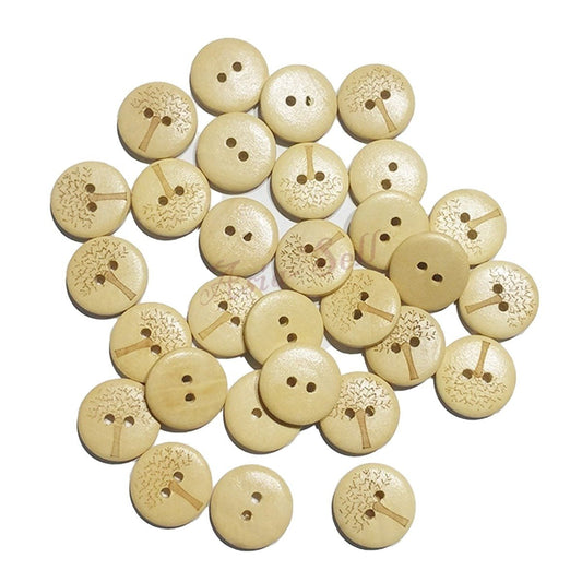 25pcs Wooden Buttons Tree Design for Clothing Craft Sewing DIY 2 Hole 20mm