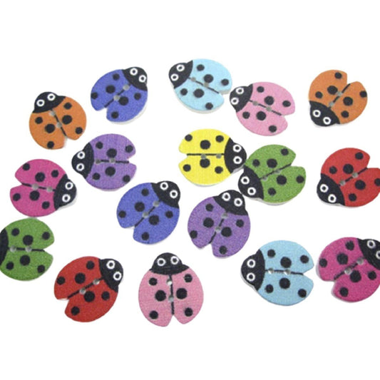 50pcs Mixed Ladybug Heart Wood Buttons Sewing Buttons For Kids Clothes DIY