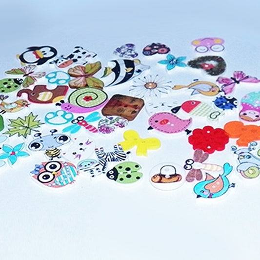 50pcs 13mm 2 Hole Buttons Pattern Mixed Children's Clothing Sewing