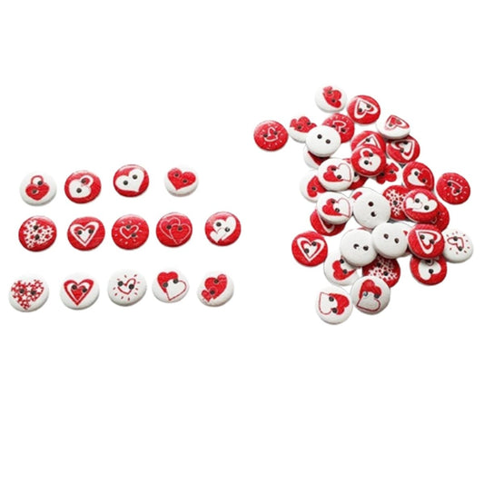 50pcs Heart Shape Decorative Painted Wooden Buttons Wood Button Wooden Decorations