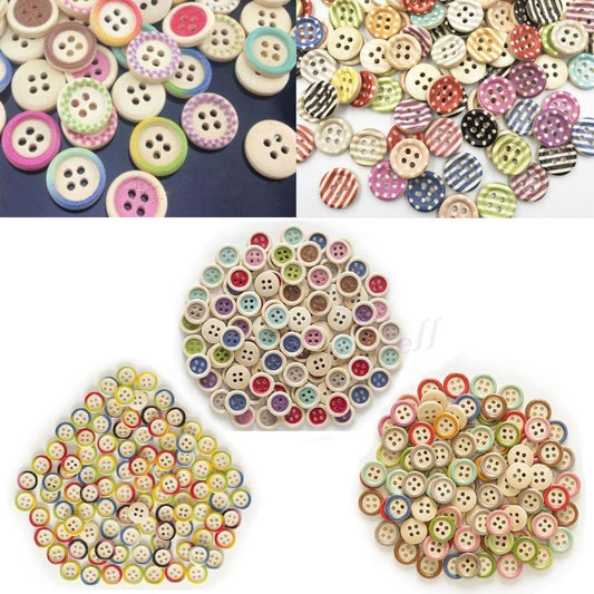 50pcs Wooden Buttons 4 Hole 15mm Multicoloured Round Clothing Sewing Colourful