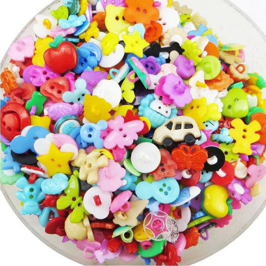 100pcs Mixed Shapes Buttons and Brooches for Kids Clothing Plastic Colourful Sewing