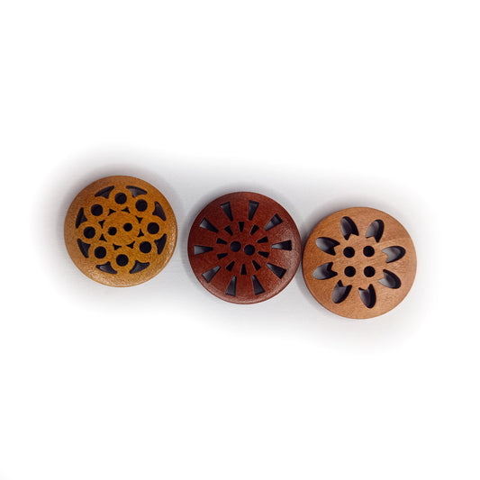 10-30pcs 18-25mm Carved Wooden Buttons Brown Cut-Out 2-Hole Coat Upholstery Flower Sewing Clothes