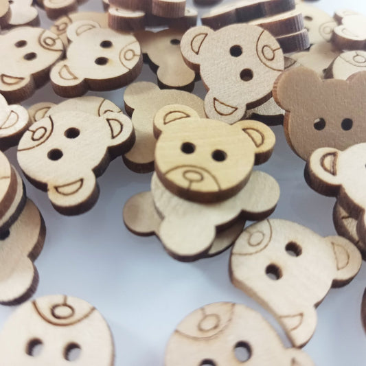50pcs 19mm Teddy Bear Clothing Wooden Buttons 2 Hole Flatback Sewing Brown