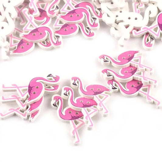50pcs Painted Flamingo Wooden Buttons Pink 2-Hole For Clothes Scrapbook 36x20mm DIY