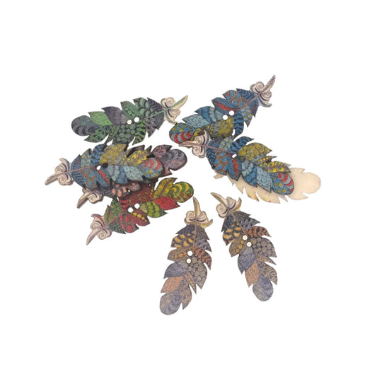 30pcs 40x15mm Wooden Sewing Buttons Leaf Indian Feather 2 Holes Buttons for Clothing Decorative Flat Back