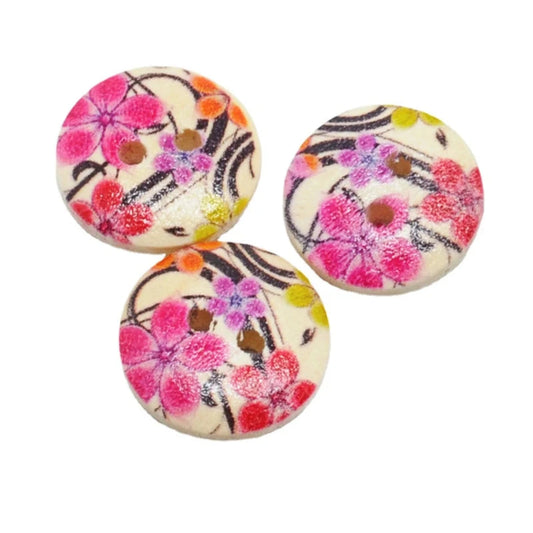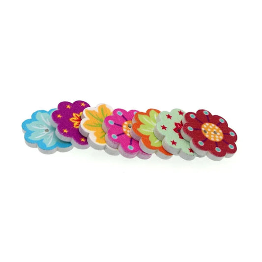 25pcs 4-Hole Flower Daisy Buttons Design Multicoloured 15mm Painted Edge