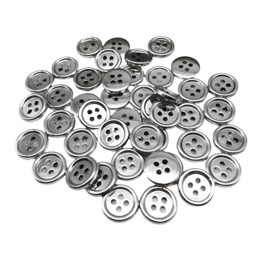 10/50/100pcs 13mm Plastic Shiny Metallic Round 4 Holes Shirt Flatback Buttons DIY Sewing Accessories Silver Gold Brass