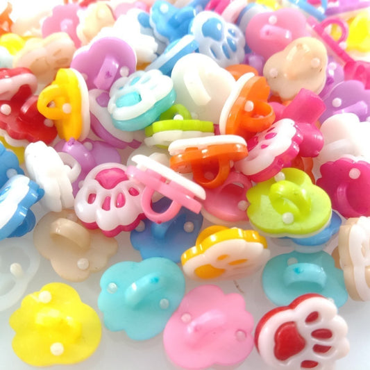 100pcs Buttons 13mm Candy Colour Small Bear Paw Multicolour Cartoon Child Plastic Button Children's Clothing Sewing Crafts