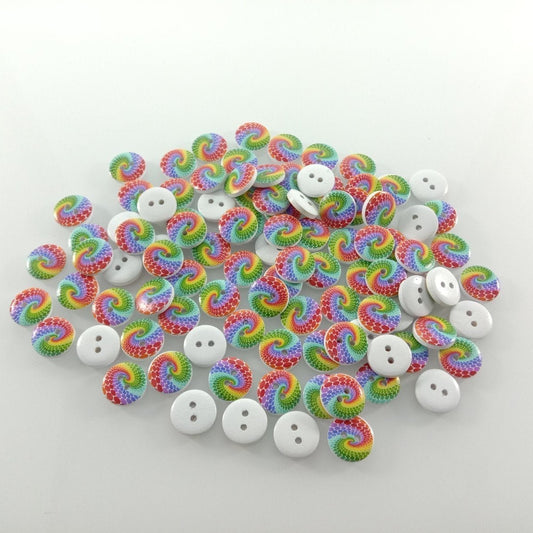 100pcs Rainbow Swirl Patterned Round Two Hole Wooden Buttons Size 20mm Clothing Sewing Button Decoration