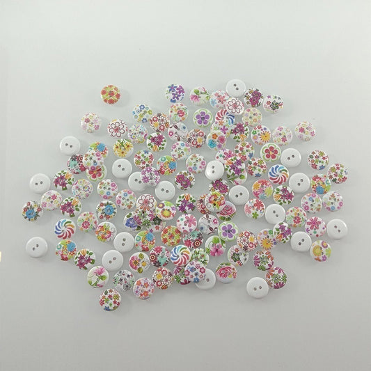 120pcs 2 Holes Wood Buttons Scrapbooking Clothing Accessories 15mm Sewing Handmake Painted Flower Craft