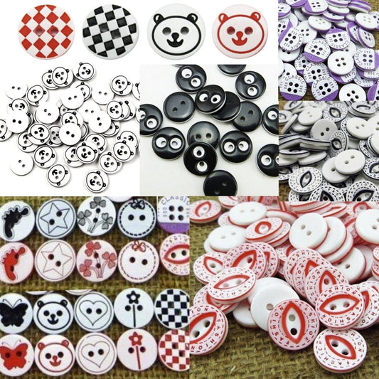 100pcs 12mm 2 Holes Mixed Round Resin Buttons For Clothes Crafts Sewing