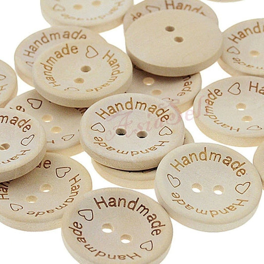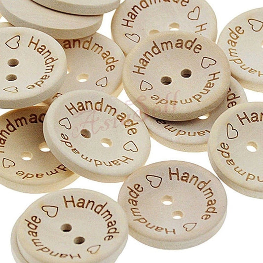 200pcs 2-Holes Handmade with Love Round Wooden Buttons Button Handmade Clothes
