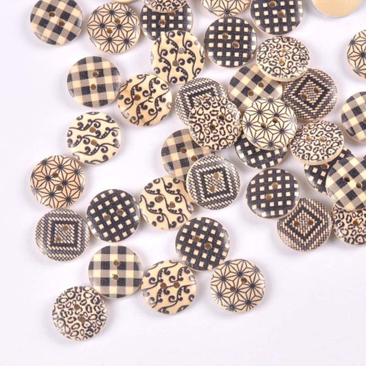 50x Retro Wooden Buttons for Scrapbooking and Handmade Clothes 15-25mm Set B
