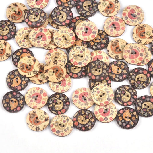50pcs Vintage Cute Bird Printed Wooden Buttons For Sewing Clothing Scrapbooking DIY Crafts Kids Garment Handmade Supplies