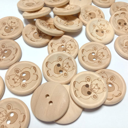 200pcs Wooden Buttons 15mm-25mm 2-Holes Teddy Pattern Round for Handmade Clothes