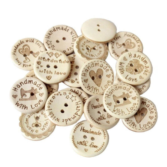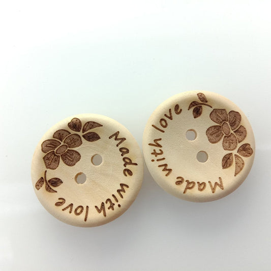 32pcs 30mm Wooden Buttons 2-Holes Handmade with Love Round Handmade Clothes