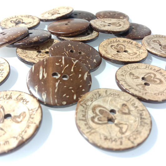20pcs 30mm Handmade with love Coconut Sewing Buttons Crafts Extra Large Scrapbooking Wood
