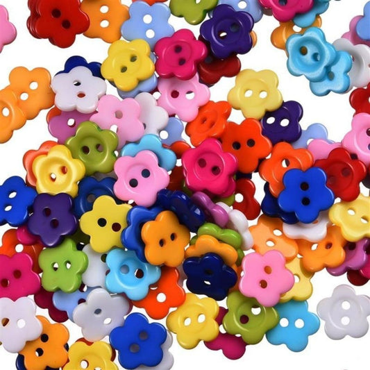 300pcs Multicolour Flower Shape Resin Buttons 11mm 2 Hole for Clothes Sewing