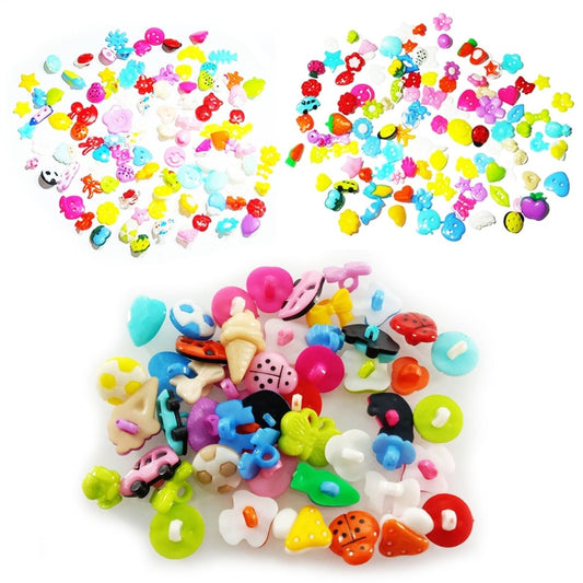 50/100pcs Mixed Shapes Buttons and Brooches for Kids Clothing Plastic Colourful Sewing