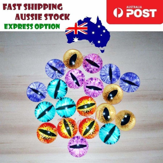 20pcs 8mm-16mm Glass Animal Eyes Slit Pupils Reptile DIY Craft Toy