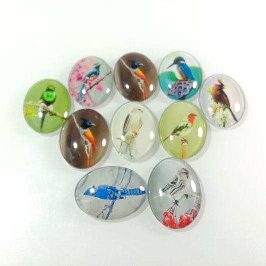 10pcs Large Glass Cabochons Bird Pictures Oval Shaped 30x40mm