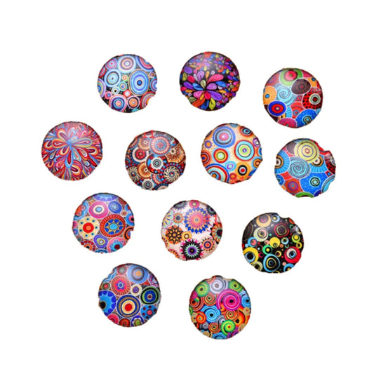 24x Psychedelic Colourful Mandala Glass Cabochons 12mm 14mm 16mm Dome Cameo