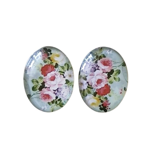 18pcs 13x18mm Oval Mixed Retro Flowers Glass Cabochons Flatback Photo Dome DIY