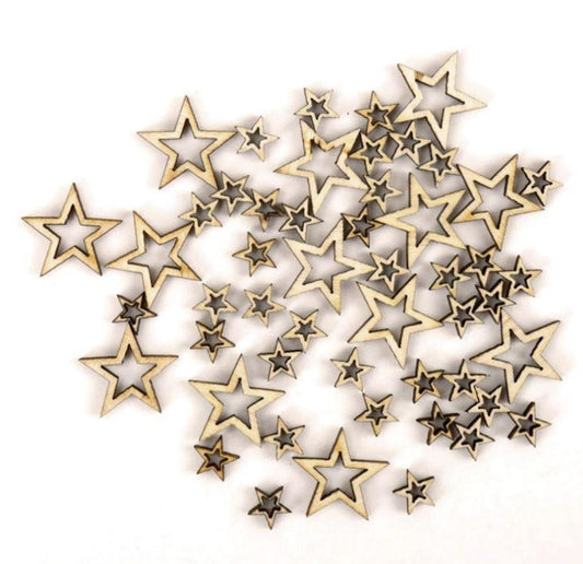 Wooden Stars Confetti 10-30mm Wood Crafts Decorations Outline Hollow
