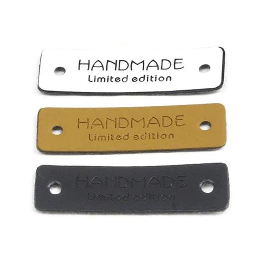 The collection also includes various clothing labels and tags made of faux leather or plastic, featuring texts such as "Handmade with Love," garment sizes, and "Handmade" labels. These labels are perfect for adding a personal touch to your DIY clothing and accessories and to show off your handmade creations. The hair bows and bowties made of grosgrain ribbon are also perfect for creating cute and fashionable accessories for babies and kids.