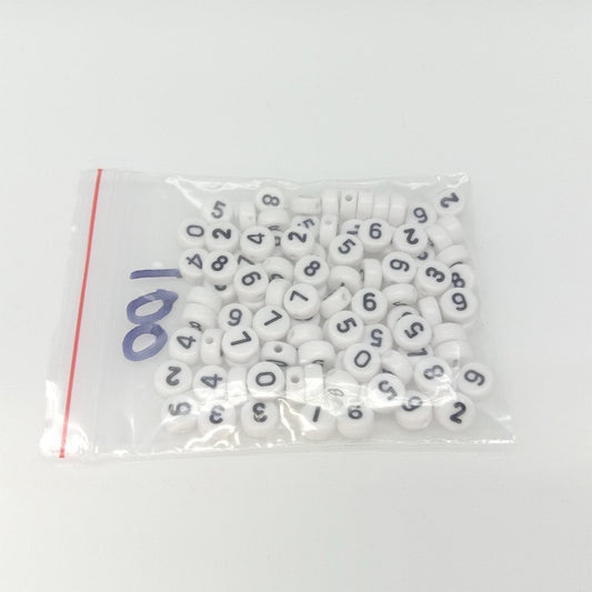 100pcs Numbers Spacer Beads DIY Black Writing on White Bead
