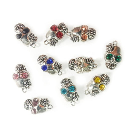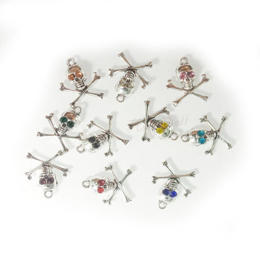 10pcs Skull Crossbones Charms Retro Mixed Crystal Halloween Pendants Tibetan Silver Tone 21x23.5mm