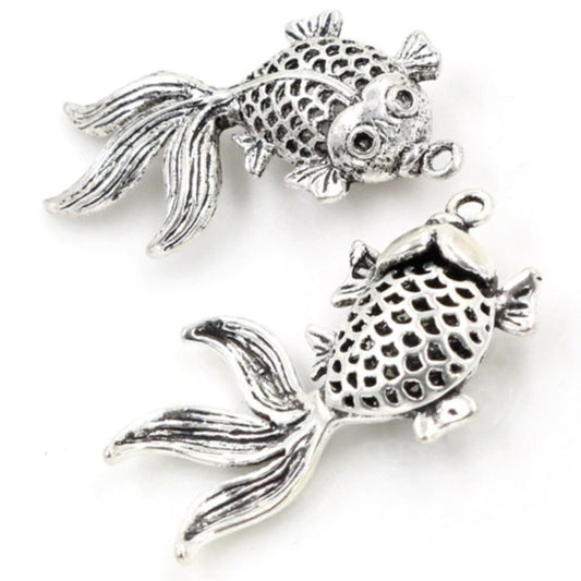 2pcs Fish Charms for Necklace Antique Silver Bronze Gold Plated Hollow 34x22mm Pendant DIY