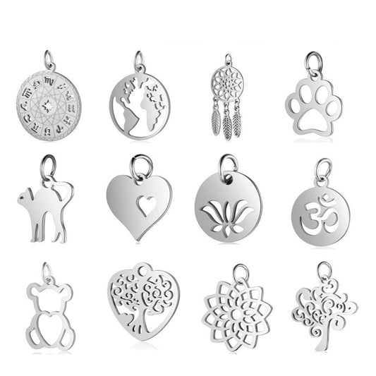 2pcs S/S Charm DIY Charms Jewellery Making Om Dog Paw Cat Animal Elephant Teddy Yoga Lotus Heart