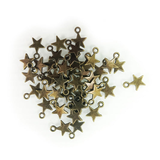 40pcs 11x8mm Bronze Gold Silver Colour Tiny Star Charm Loop Pendant Jewellery Making
