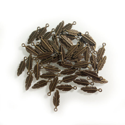 40pcs Feather Charms Pendant DIY Metal Jewellery Making Antique Silver Gold Bronze Colour
