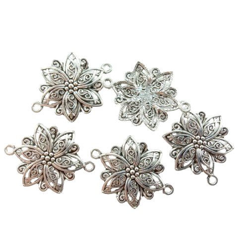 5pcs 40x28mm Antique Bronze Silver Plated Flower Style Handmade Charms Pendant DIY for Bracelet Necklace Jewellery Making
