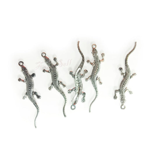 5pcs 56x15mm Pendant Gecko Charm Pendants Jewellery Making Antique Silver Colour Lizard