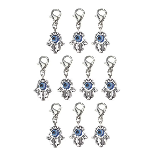 10pcs 35x13mm Beads Hamsa Hand Charms Pendent Lobster Clasp Pendant Key Chain Jewellery Accessories