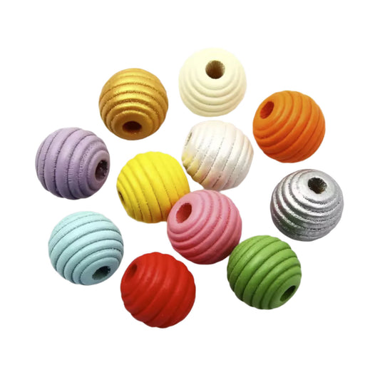 12-18mm Round Grooved Wooden Beads Striped Ball Shape Bright Pastel Shades Loose For Jewellery Making DIY Handmade Crafts Accessories