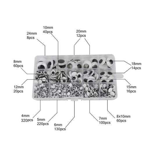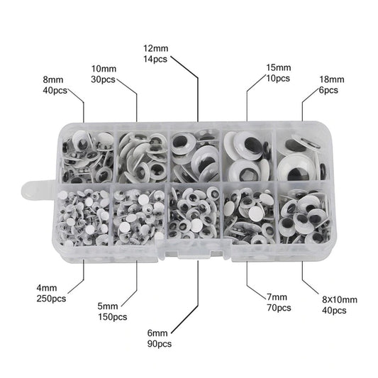 1000pcs Googly Eyes Box Set 5mm-24mm Plastic Moving Boggle Eyes Adhesive Backing