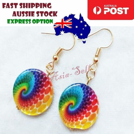 Large 20mm Rainbow Multicolour Beach Earrings SILVER GOLD Dangles Earring Hook