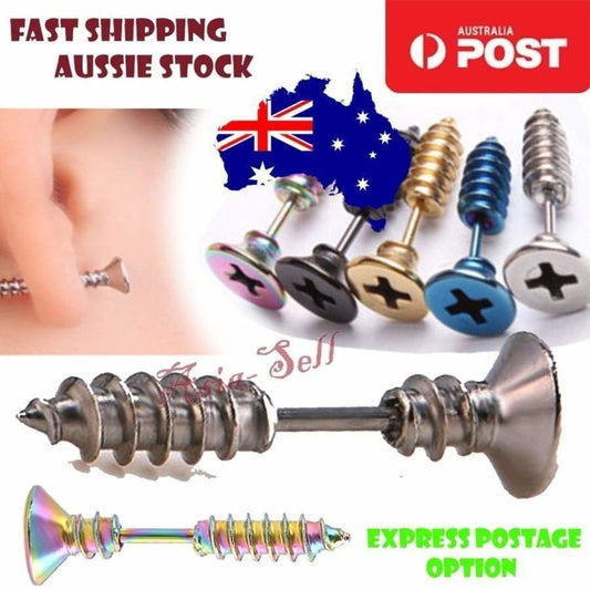 Punk Stainless Steel Stud SCREW Earrings BLUE GOLD SILVER BLACK COLOUR-CHANGING