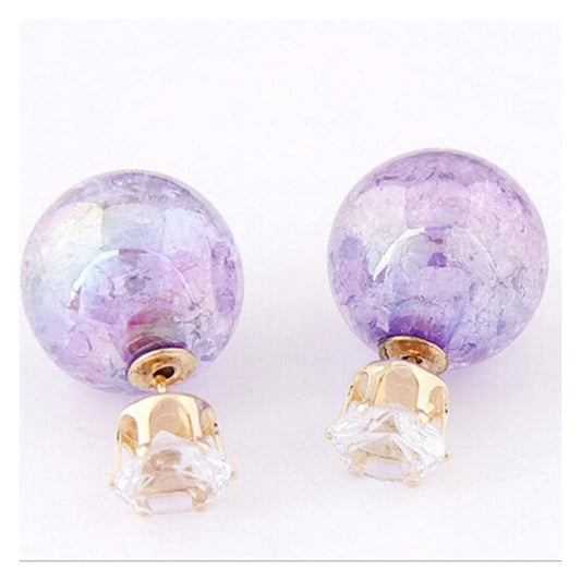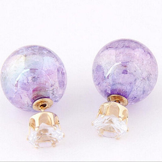 Womens Candy Colour Double Side Round Pearl Earrings Crystal Ball Ear Stud