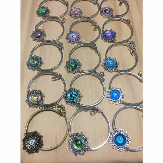Wristband Charm Cuff Glass Cabochon Bracelet Mandala Flower Zen Picture Bangle